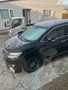 朝、車に霜が降りていて、フロントガラスも凍っていました。
